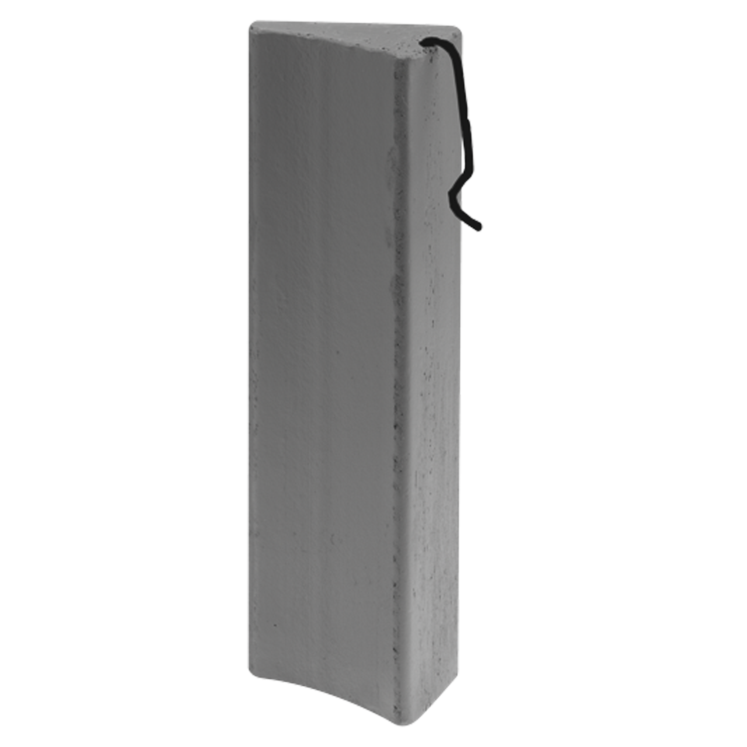 Besonders stabiler Abstandhalter aus Faserbeton mit Haken zum Einhängen in die senkrechte Bewehrung.